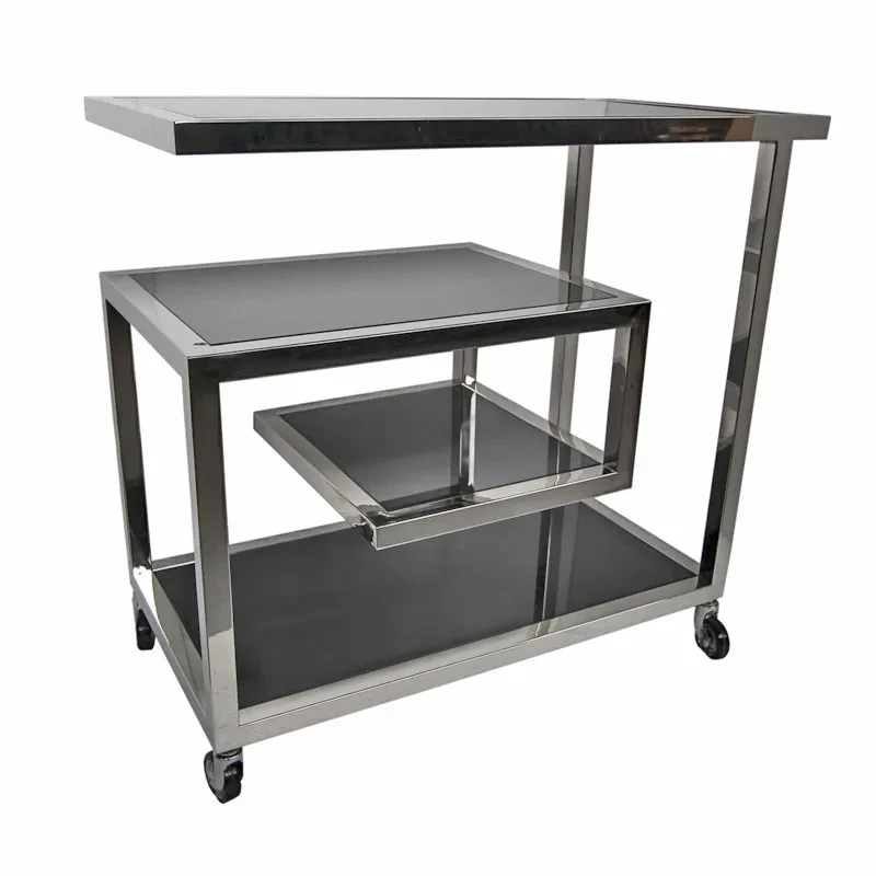 Deze elegante en praktische barwagen van het merk Payaa is de perfecte toevoeging aan uw interieur. Met een afmeting van 420x830x780 is deze barwagen ruim genoeg om al uw drankjes en accessoires op te bergen. Het productnummer is 110810, waardoor u gemakkelijk kunt bestellen en de juiste variant ontvangt. De barwagen is ontworpen in een klassieke stijl en heeft een rechthoekige vorm, waardoor hij naadloos past in verschillende interieurstijlen. Het materiaal is van hoge kwaliteit metaal en glas, wat zorgt voor duurzaamheid en een modern tintje. De zilveren en zwarte kleuren geven de barwagen een luxe uitstraling.
