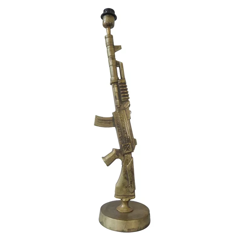 Verfraai uw ruimte met de Tafellamp Machine Gun 70cm goud. Gemaakt voor stijl en functionaliteit, en aanpasbaar aan uw verlichtingsbehoeften. Het is gebouwd met hoogwaardige materialen en straalt verfijning uit. Perfect voor woningen en kantoren, het is een boeiende toevoeging. Snelle verzending mogelijk en u kunt hem bekijken in onze showroom in Venlo. Verlicht uw ruimte met moderne elegantie. Maak vandaag nog een gedurfd statement met de Tafellamp Machine Gun 70 cm.
