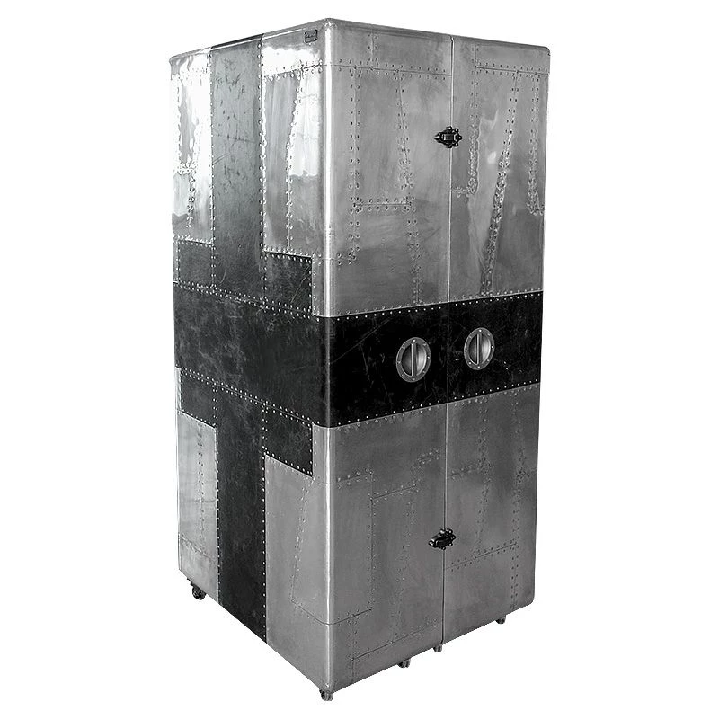 Vliegtuig Wijnkast Sussex 86x80x177cm met zwart leer