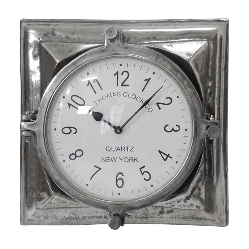 Wandklok Juniper 40x9x41cm vintage ruw zilver