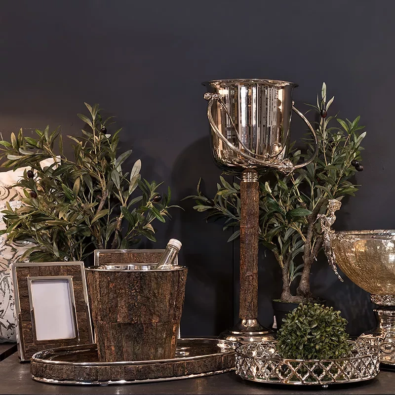 Wijnkoeler 22x22x21cm met hout en zilver (111341)