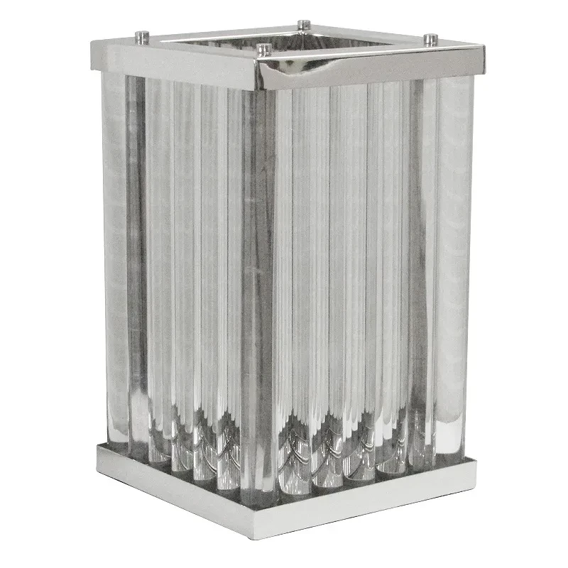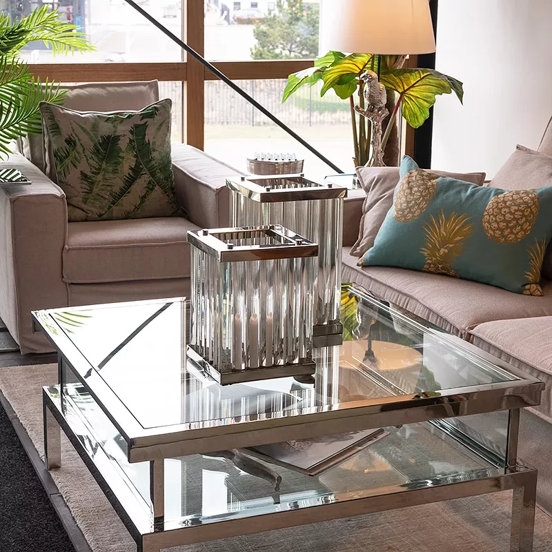 Windlicht Licht 25x25x40cm Art Deco Groot Vierkant Zilver
